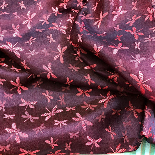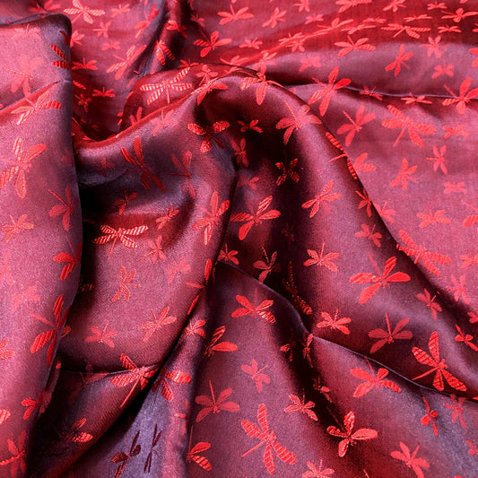 Mulberry Silk Pattern Fabric – Dragonfly Pattern – Silk for Sewing – Red Pattern Silk Fabric