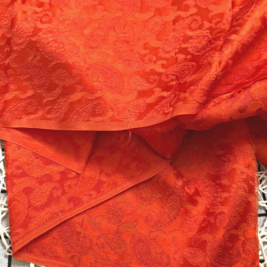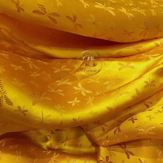Mulberry Silk Pattern Fabric – Dragonfly Pattern – Silk for Sewing – Orange Pattern Silk Fabric