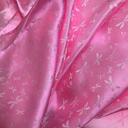Mulberry Silk Pattern Fabric – Dragonfly Pattern – Silk for Sewing – Pink Silk Fabric