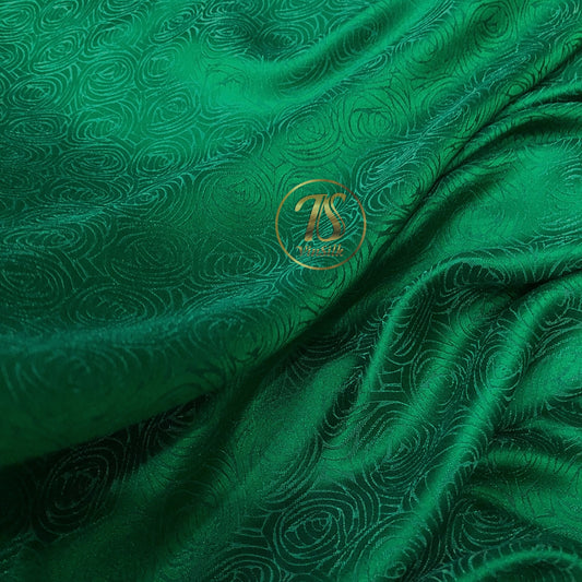 Green fabric with mulberry cabbage pattern, Pure mulberry silk, Handmade fabric, Organic fiber