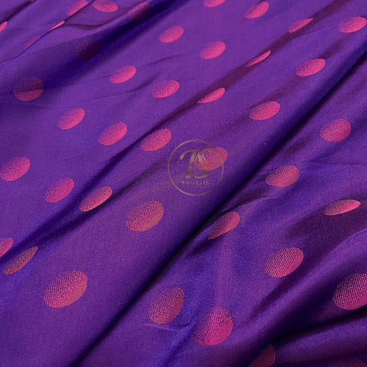 Purple fabric with mulberry pink polka dots pattern, Pure mulberry silk, Handmade fabric, Organic fiber