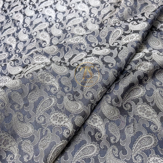 Gray white fabric with mulberry peacock tails pattern, Pure mulberry silk, Handmade fabric, Organic fiber