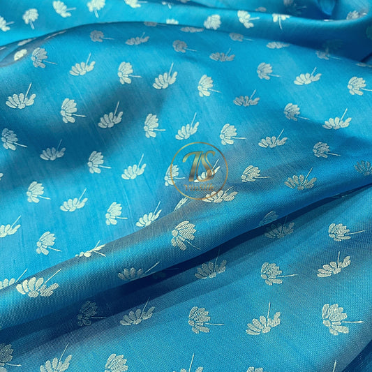 Light Blue fabric with mulberry cabbage pattern, Pure mulberry silk, Handmade fabric, Organic fiber