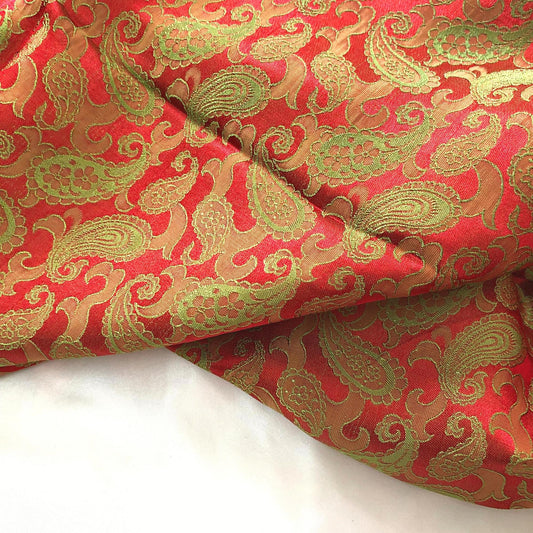 Orange Red fabric with mulberry peacock tails pattern, Pure mulberry silk, Handmade fabric, Organic fiber
