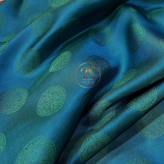 Dark blue silk fabric with mulberry Emerald pattern, Pure mulberry silk, Handmade fabric, Organic fiber, Vintage textile