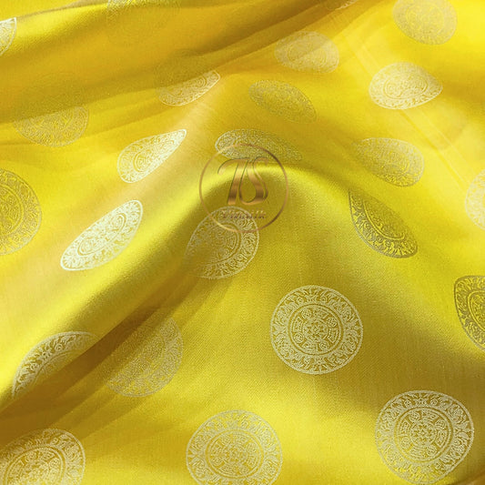 Yellow white silk fabric with mulberry Bronze drum pattern, Pure mulberry silk, Handmade fabric, Organic fiber, Vintage textile