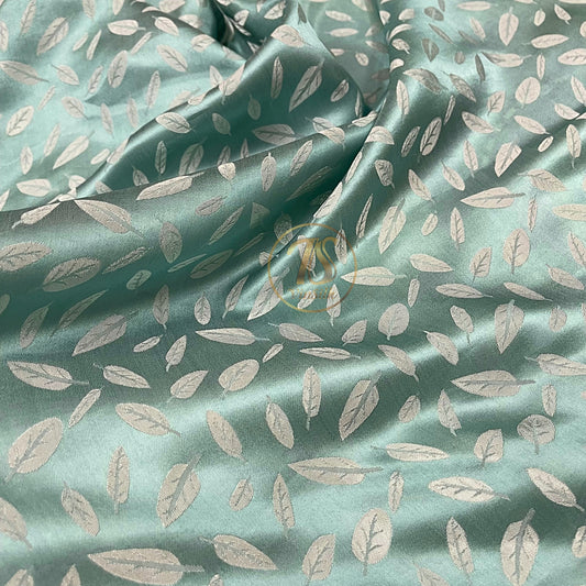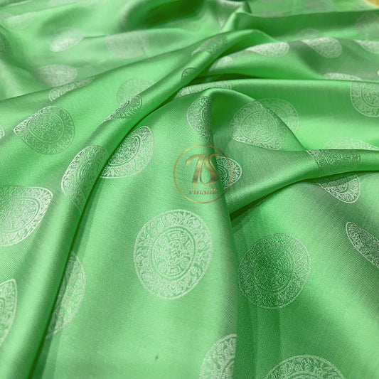 Light green silk fabric with mulberry Emerald pattern, Pure mulberry silk, Handmade fabric, Organic fiber, Vintage textile