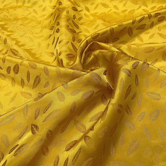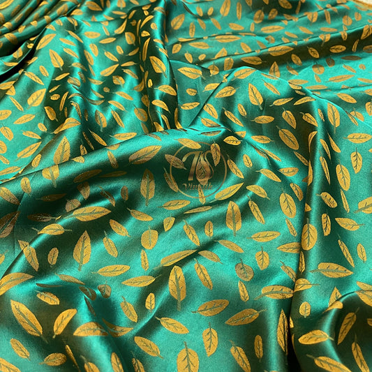 Bronze gold silk fabric with mulberry white leaves pattern, Pure mulberry silk, Handmade fabric, Organic fiber, Vintage textile
