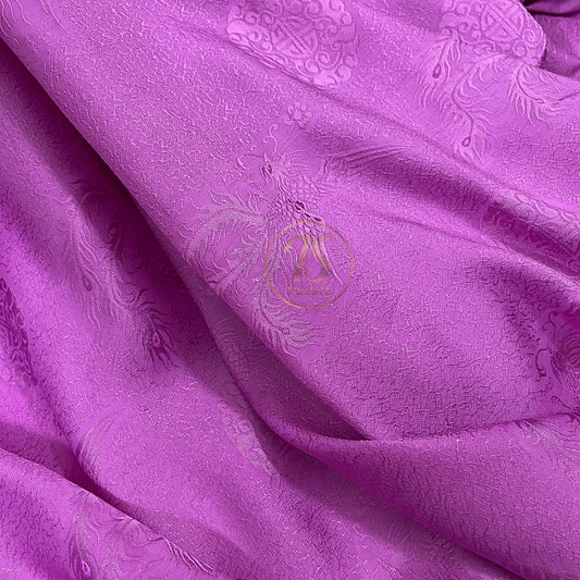 Purple silk fabric with mulberry phoenix pattern, Pure mulberry silk, Handmade fabric, Organic fiber, Vintage textile