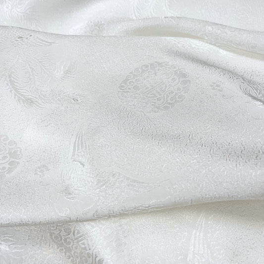 White silk fabric with mulberry phoenix pattern, Pure mulberry silk, Handmade fabric, Organic fiber, Vintage textile