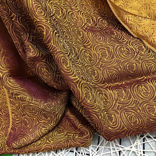 Brown Yellow silk fabric with mulberry cabbage pattern, Pure mulberry silk, Handmade fabric, Organic fiber