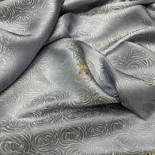 Gray silk fabric with mulberry cabbage pattern, Pure mulberry silk, Handmade fabric, Organic fiber