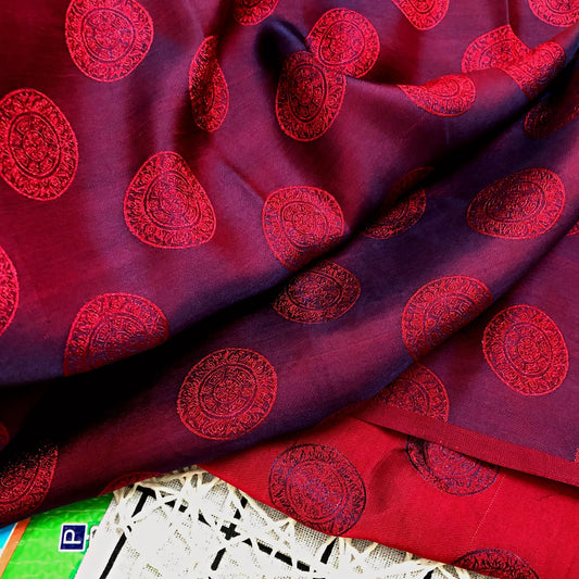 Dark red silk fabric with mulberry Bronze drum pattern, Pure mulberry silk, Handmade fabric, Organic fiber, Vintage textile