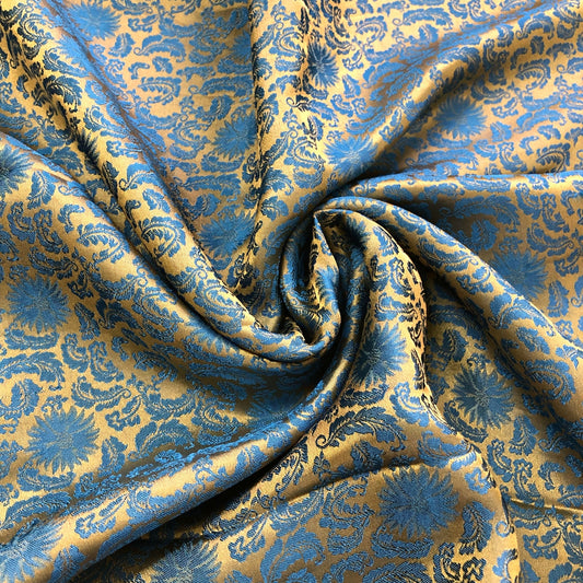 Blue silk fabric with mulberry chrysanthemum pattern, Pure mulberry silk, Handmade fabric, Organic fiber, Vintage textile
