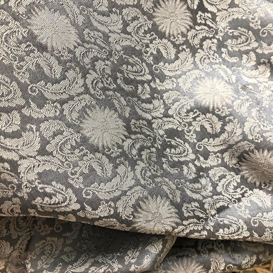 Gray silk fabric with mulberry white chrysanthemum pattern, Pure mulberry silk, Handmade fabric, Organic fiber, Vintage textile