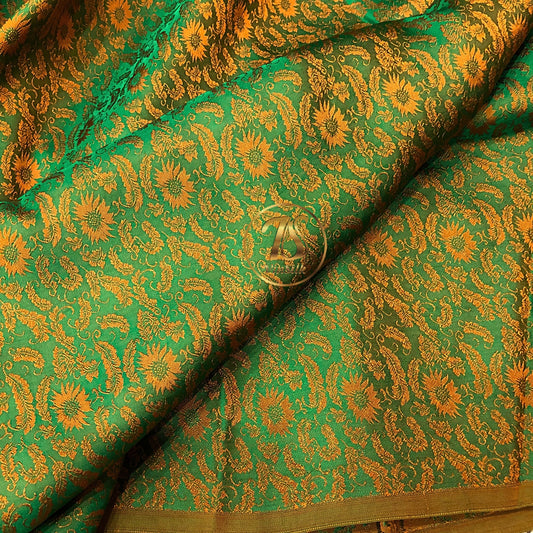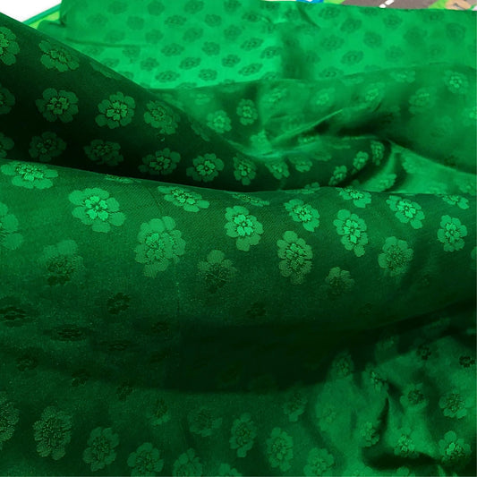 Green silk fabric with mulberry chrysanthemum pattern, Pure mulberry silk, Handmade fabric, Organic fiber, Vintage textile