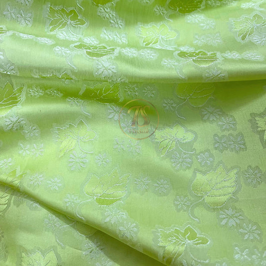 Light green silk fabric with mulberry leaf pattern, Pure mulberry silk, Handmade fabric, Organic fiber, Vintage textile