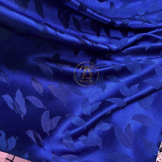 Blue silk fabric with mulberry leaves pattern, Pure mulberry silk, Handmade fabric, Organic fiber, Vintage textile