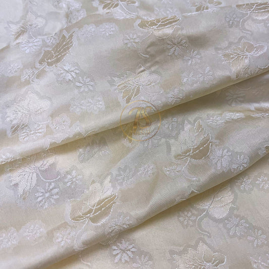 a cream silk fabric with mulberry leaf pattern, Pure mulberry silk, Handmade fabric, Organic fiber, Vintage textile
