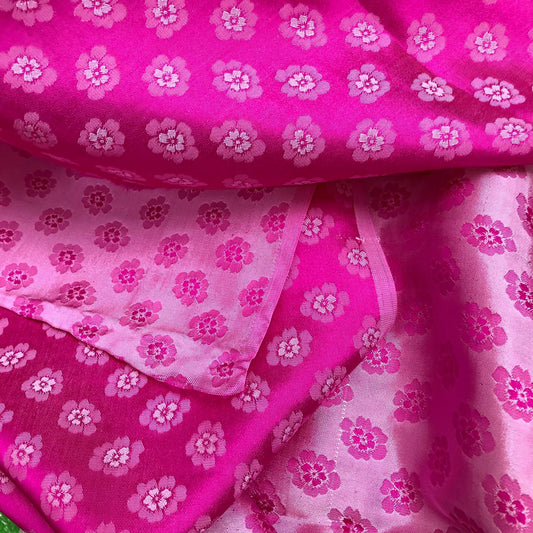 Pink silk with peach pattern fabric, Pure mulberry silk, Handmade fabric, Organic fiber, Vintage textile