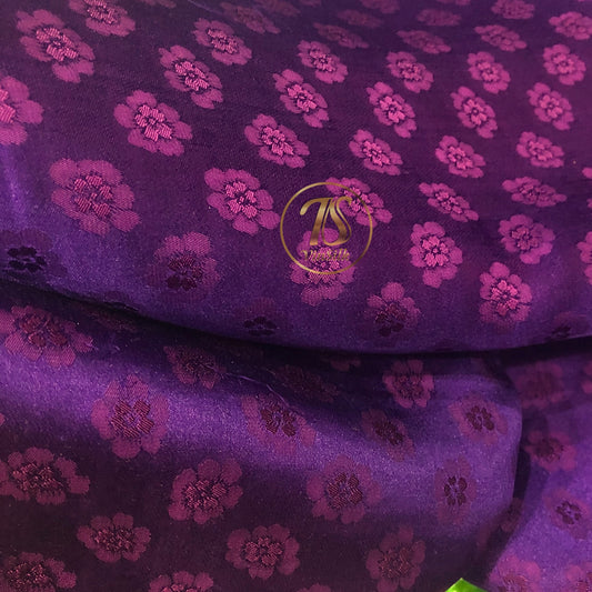 HUE Purple silk with peach pattern fabric, Pure mulberry silk, Handmade fabric, Organic fiber, Vintage textile