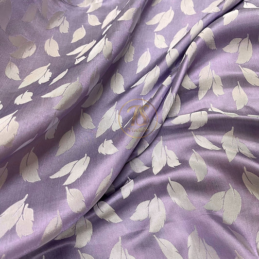 Light purple silk fabric with mulberry white leaves pattern, Pure mulberry silk, Handmade fabric, Organic fiber, Vintage textile