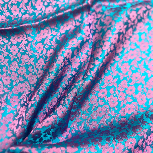 PURE MULBERRY SILK fabric by the yard - Pink floral silk - Blue silk fabric - Handmade fabric – Dress making – Silk for sewing - Gift for women