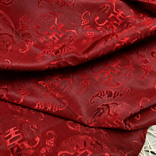 PATTERN MULBERRY SILK fabric by the yard - Red silk fabric - Handmade fabric – Dress making – Silk for sewing - Gift for her