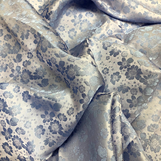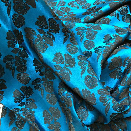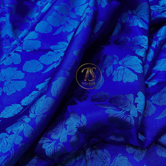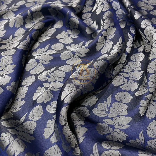 PURE MULBERRY SILK fabric by the yard - Blue silk with black floral pattern - Handmade fabric – Dress making – Silk for sewing - Gift for women