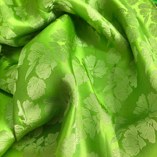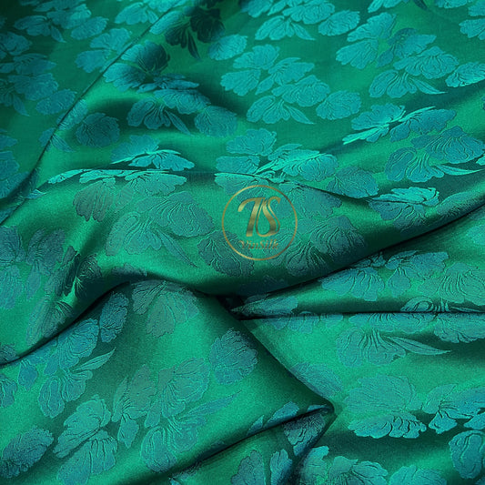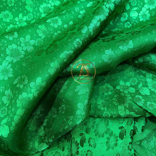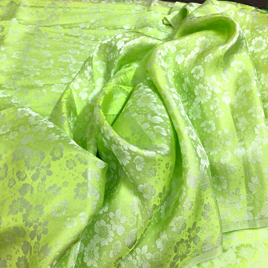 PURE MULBERRY SILK fabric by the yard - Green floral silk fabric - Handmade fabric – Dress making – Silk apparel fabric - Gift for women