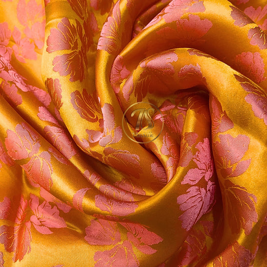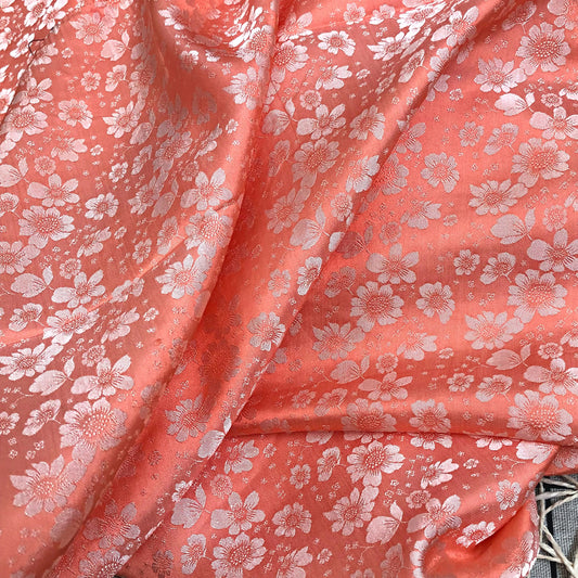 PURE MULBERRY SILK fabric by the yard - Light orange silk fabric - Floral silk - Handmade fabric – Dress making – Silk for sewing - Gift for women