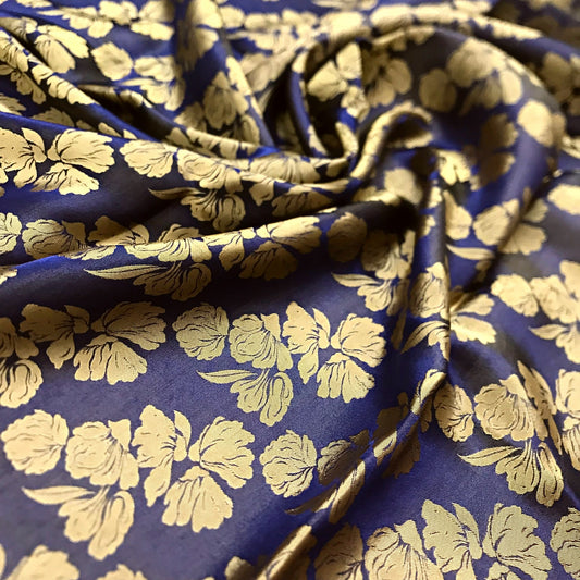 PURE MULBERRY SILK fabric by the yard - Handmade fabric – Dress making – Silk for sewing - Gift for women - Blue silk with yellow floral pattern