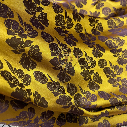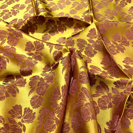 PURE MULBERRY SILK fabric by the yard - Yellow and brown silk fabric - Handmade fabric – Dress making – Silk for sewing - Gift for women