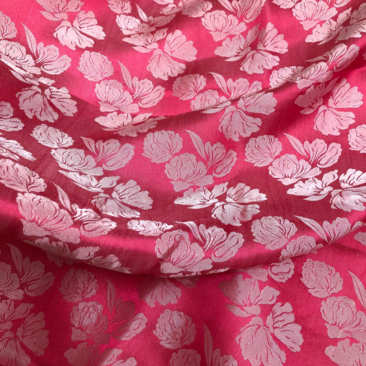 PURE MULBERRY SILK fabric by the yard - Pink floral silk fabric - Handmade fabric – Dress making – Silk for sewing - Gift for women