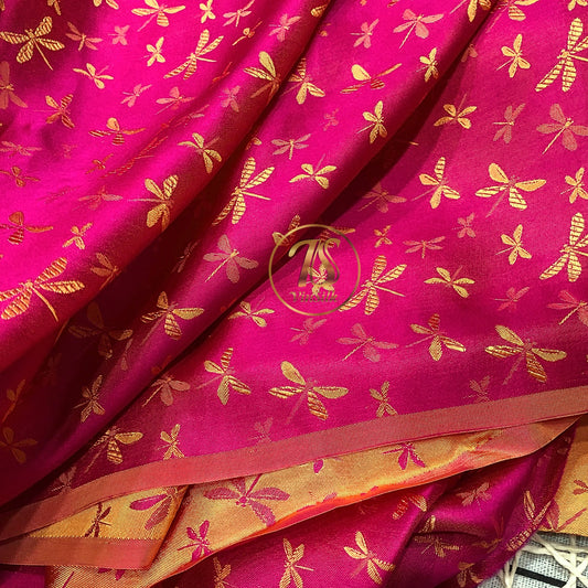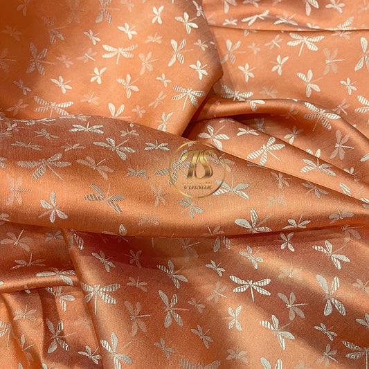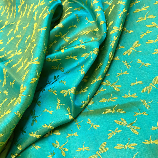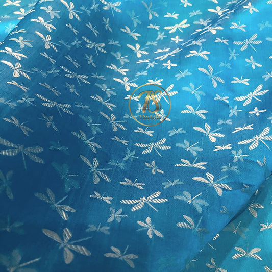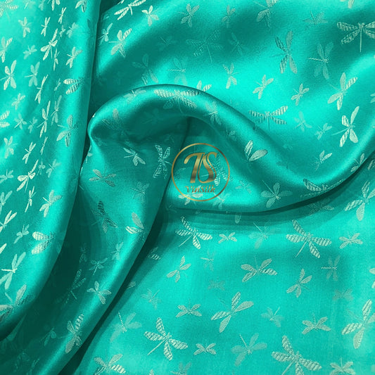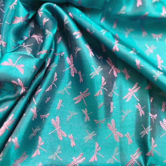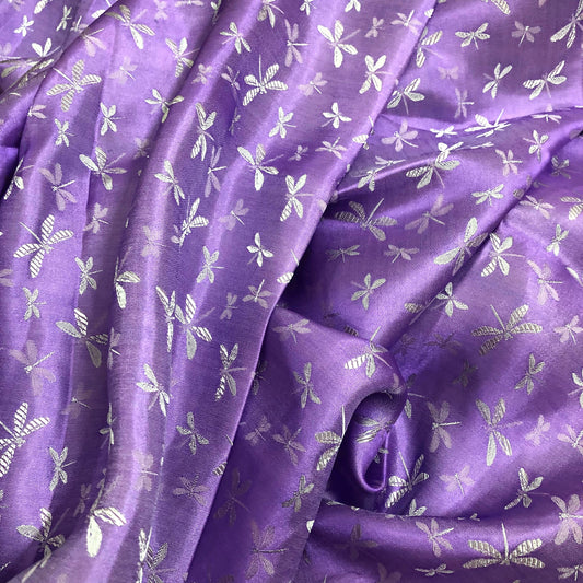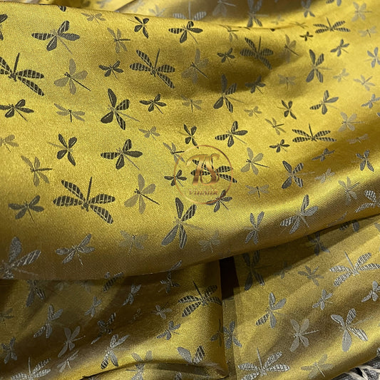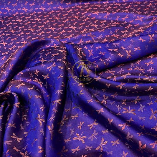 PURE MULBERRY SILK fabric by the yard - Dragonfly pattern silk fabric - Handmade fabric – Dress making – Silk for sewing - Gift for women