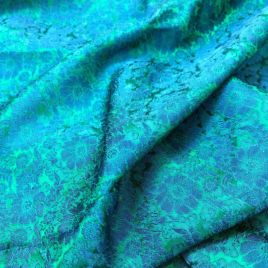 Mulberry Silk Floral Fabric – Chrysanthemum Pattern – Silk for Sewing - Dress making - Blue silk fabric