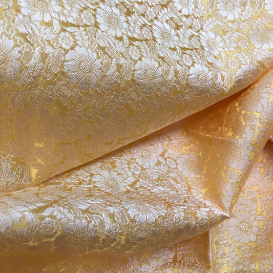 Mulberry Silk Floral Fabric – Chrysanthemum Pattern – Silk for Sewing - Dress making - Yellow silk with white floral pattern.
