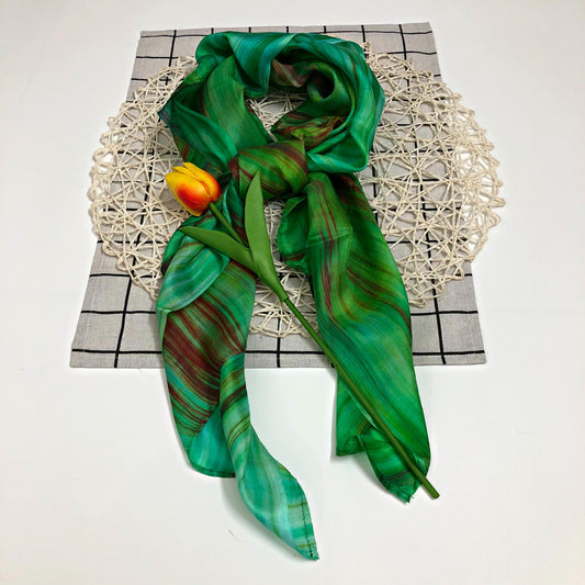 100% MULBERRY SILK SCARF - Pure mulberry silk - Green Square Scarf - Women's Scarves - Fashion Scarf - Handmade Silk Scarf - Gift for her