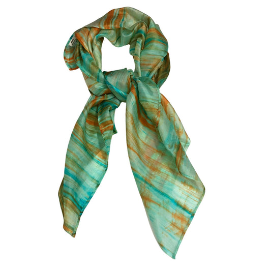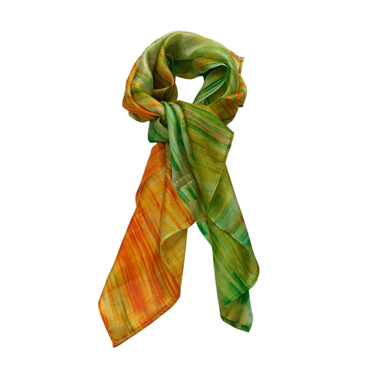 100% MULBERRY SILK SCARF - Pure mulberry silk - Green and Orange Square Scarf - Women's Scarves - Fashion Scarf - Luxury Scarf - Gift for her