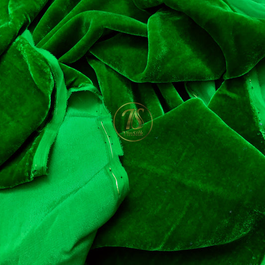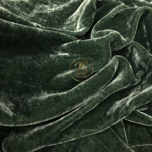 100% MULBERRY SILK VELVET fabric by the yard - Luxury Silk Velvet for Dress, Skirt, High End Garment - Silk apparel fabric - Green silk velvet