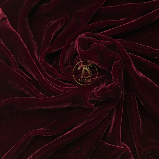 100% MULBERRY SILK VELVET fabric by the yard - Luxury Silk Velvet for Dress, Skirt, High End Garment - Silk apparel fabric - Dark red silk velvet