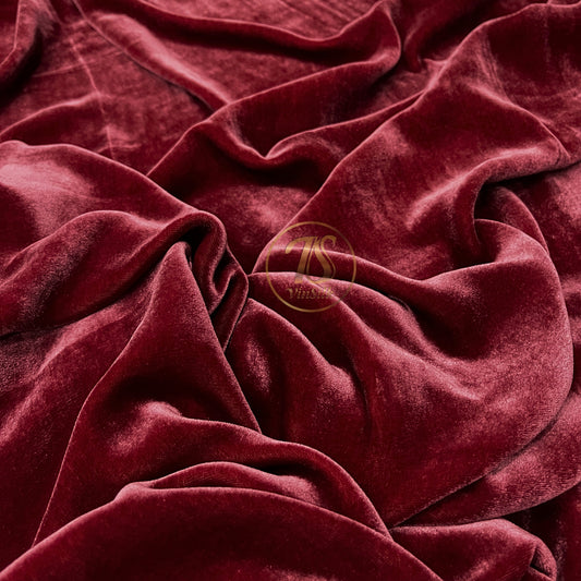 100% Mulberry Silk Fabric - Red Silk Velvet - Silk for sewing - Luxury Velvet