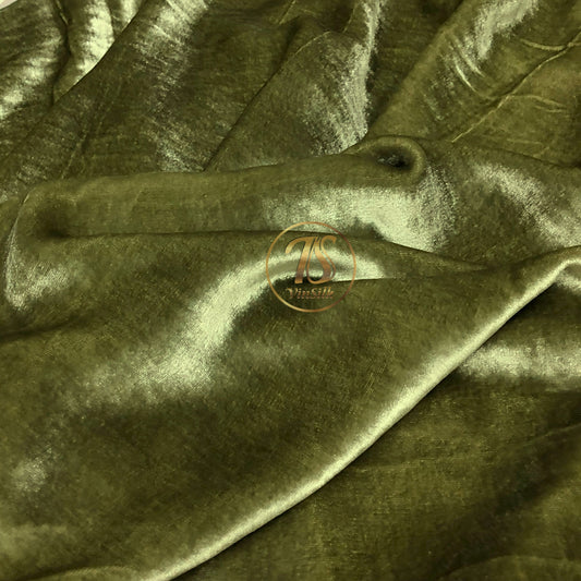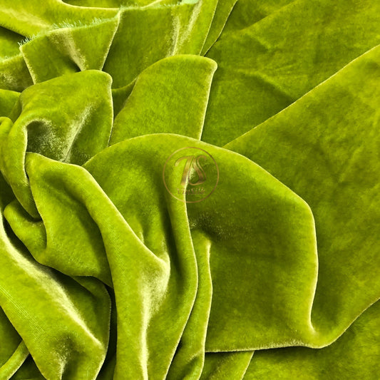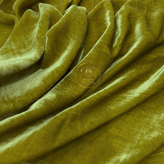 100% Pure Mulberry Silk Velvet Fabric - Luxury Silk Velvet - Silk for sewing - Green and yellow silk velvet