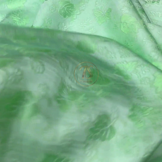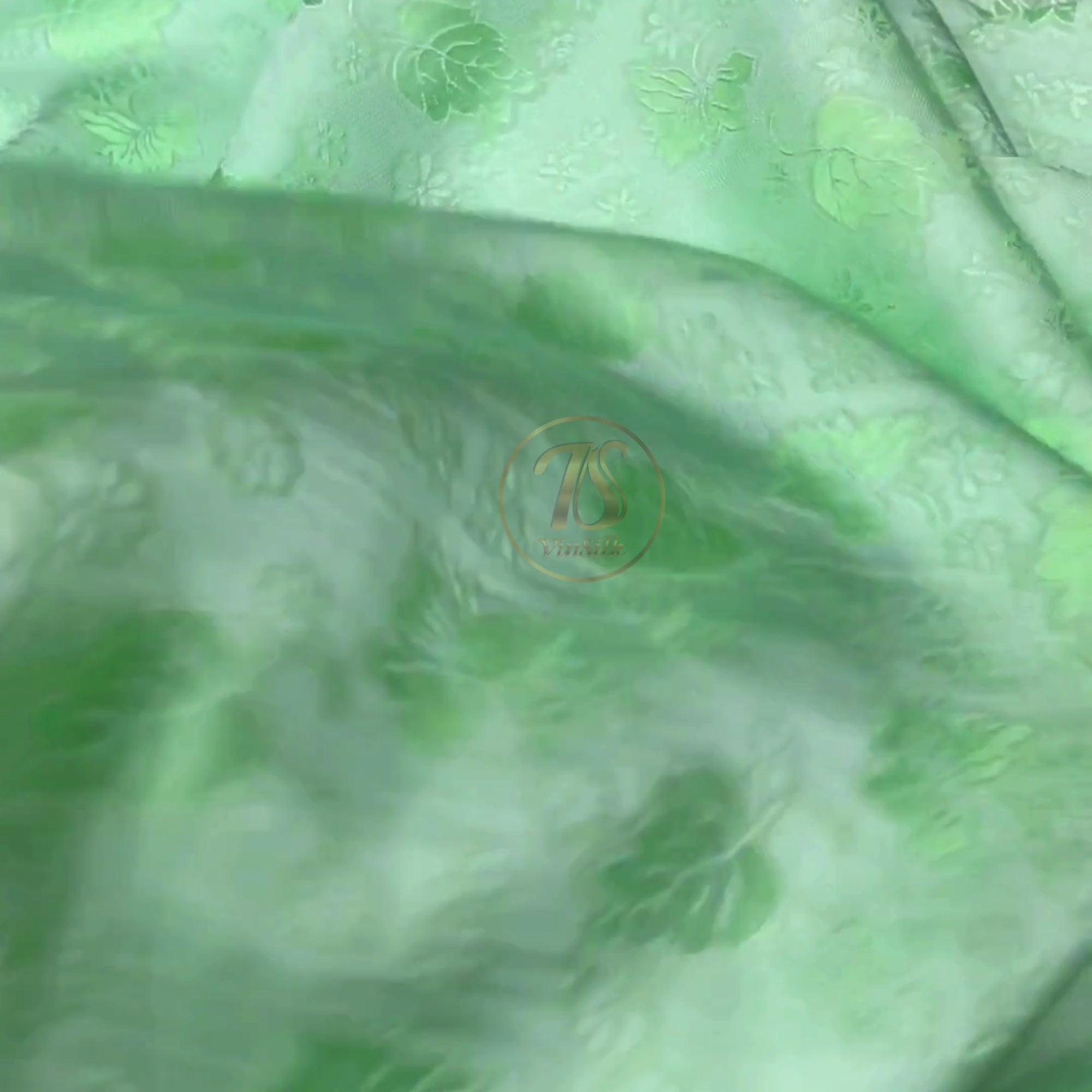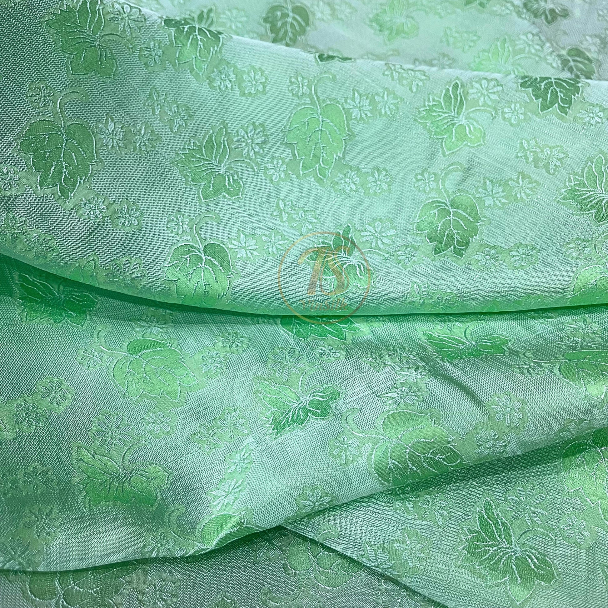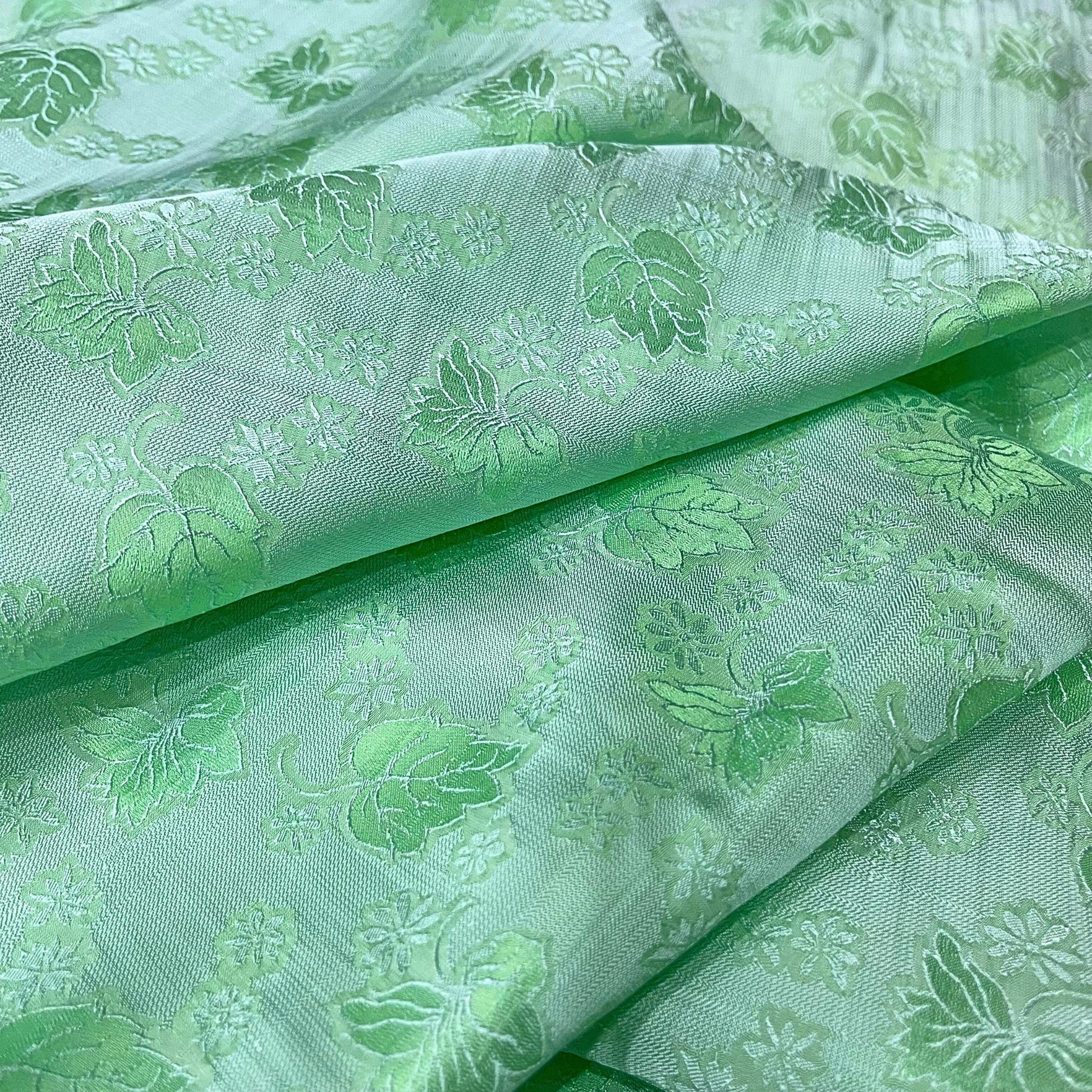 A turquoise silk fabric with mulberry leaf pattern, Pure mulberry silk, Handmade fabric, Organic fiber, Vintage textile