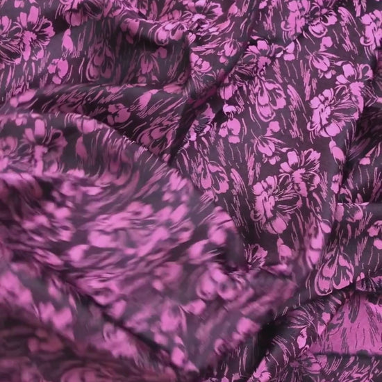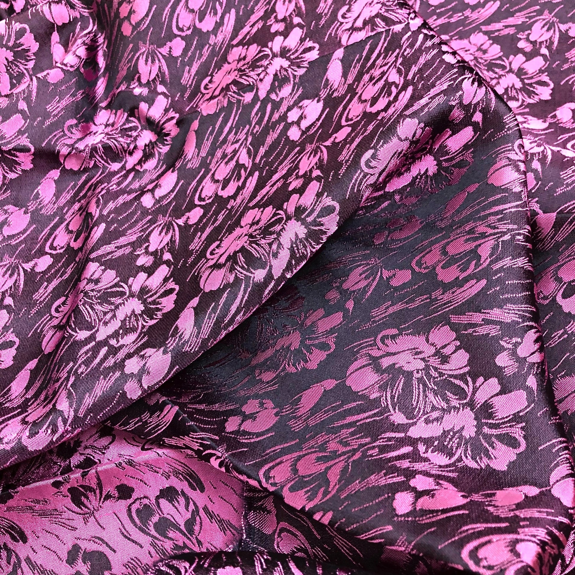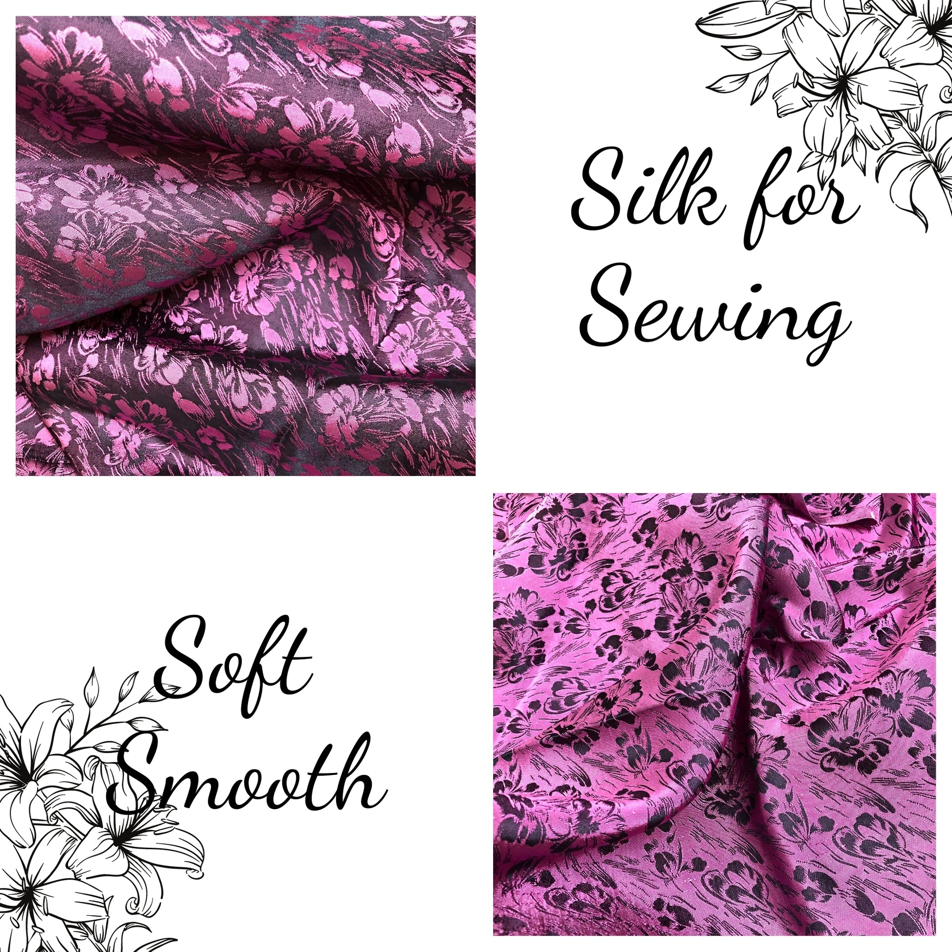 Black silk with pink butterfly pattern, Floral silk fabric, Pure mulberry silk, Handmade fabric, Organic fiber