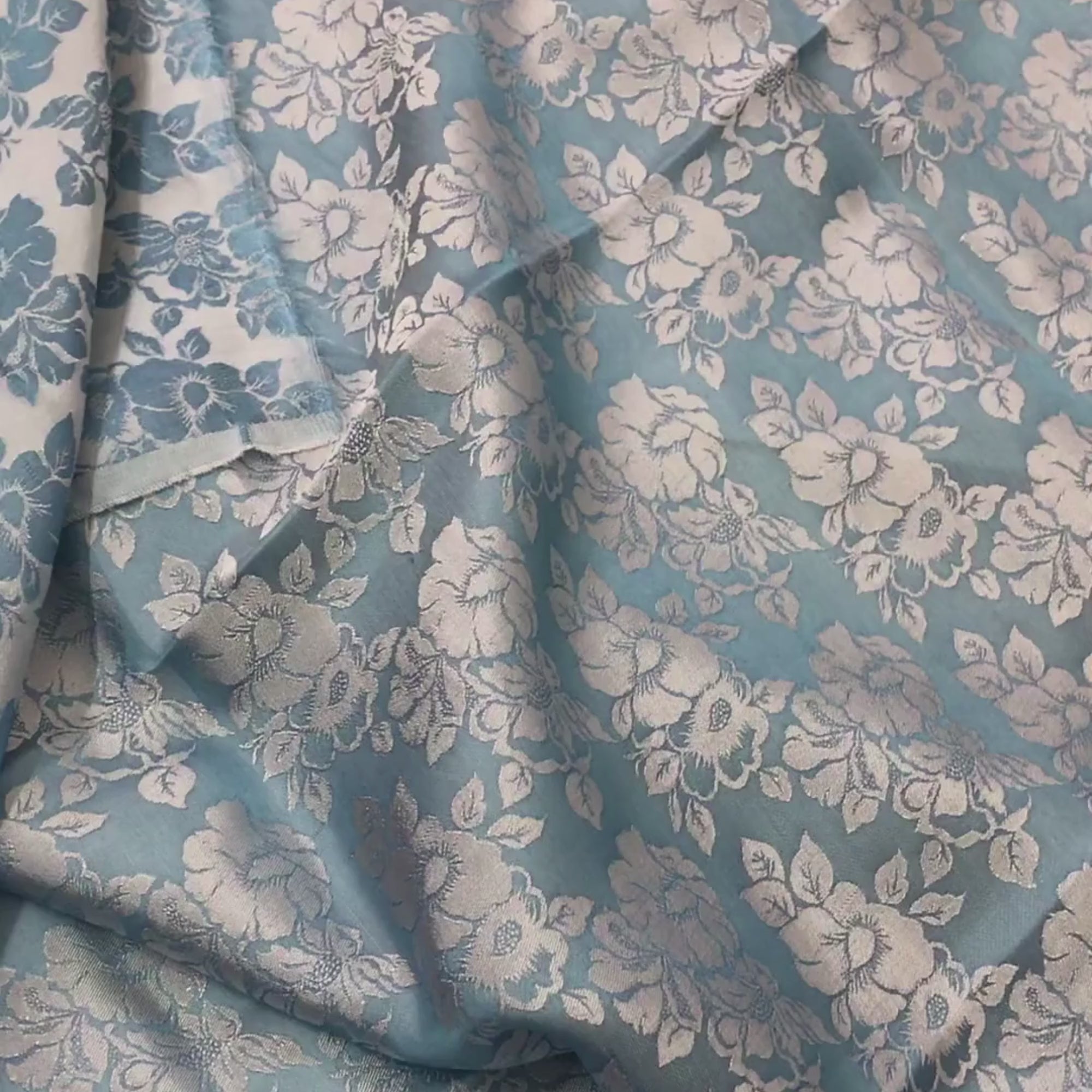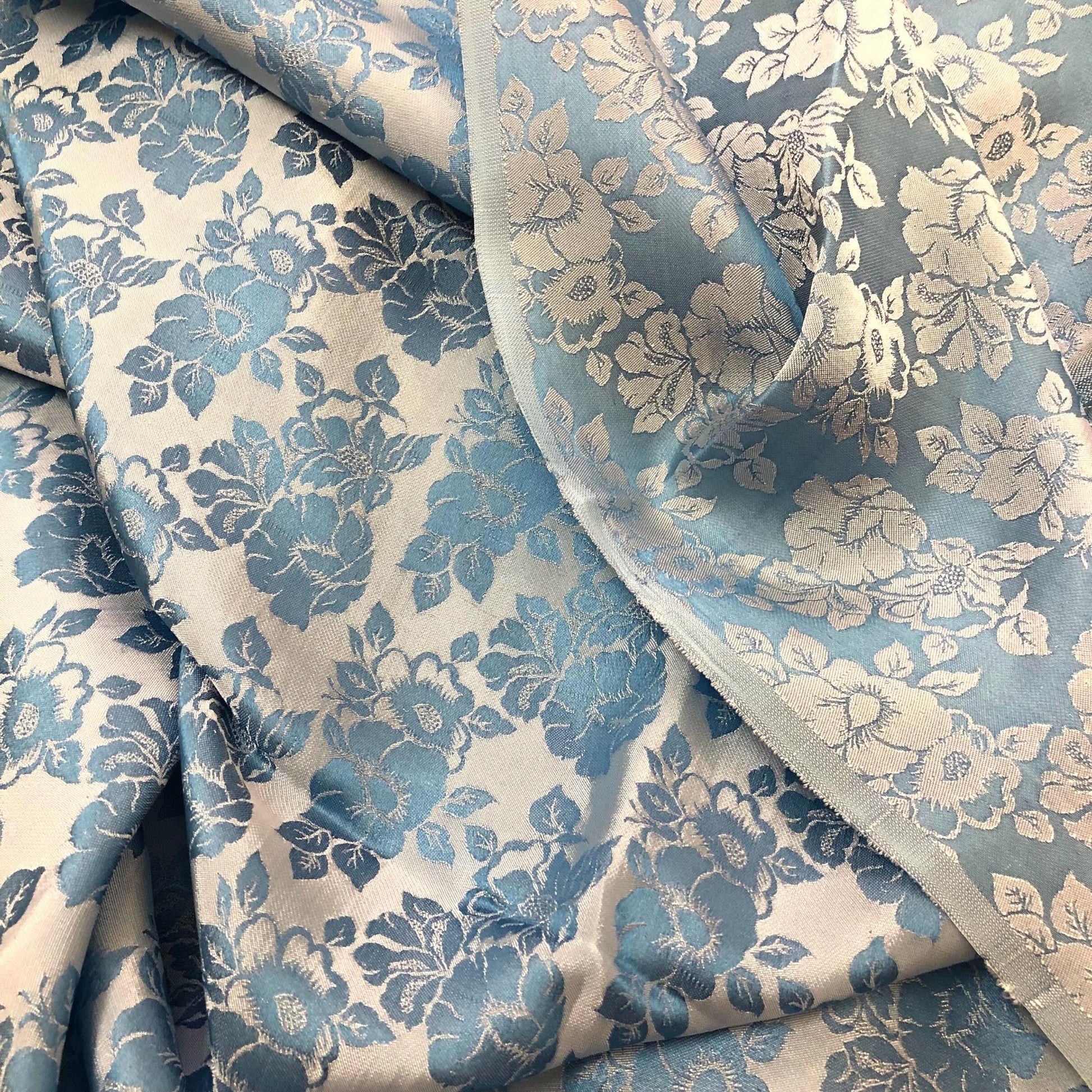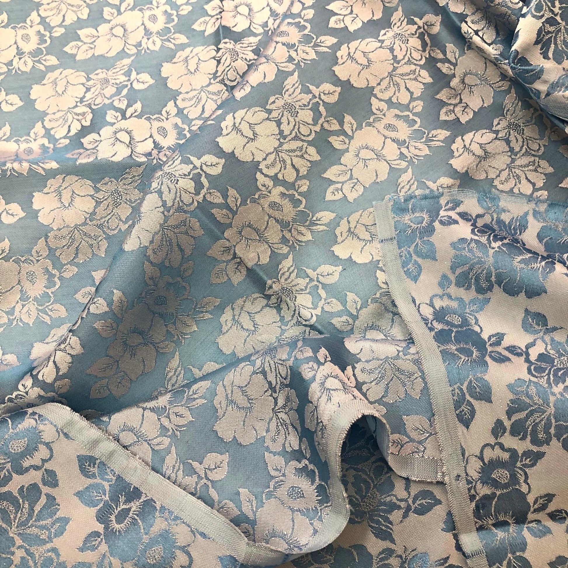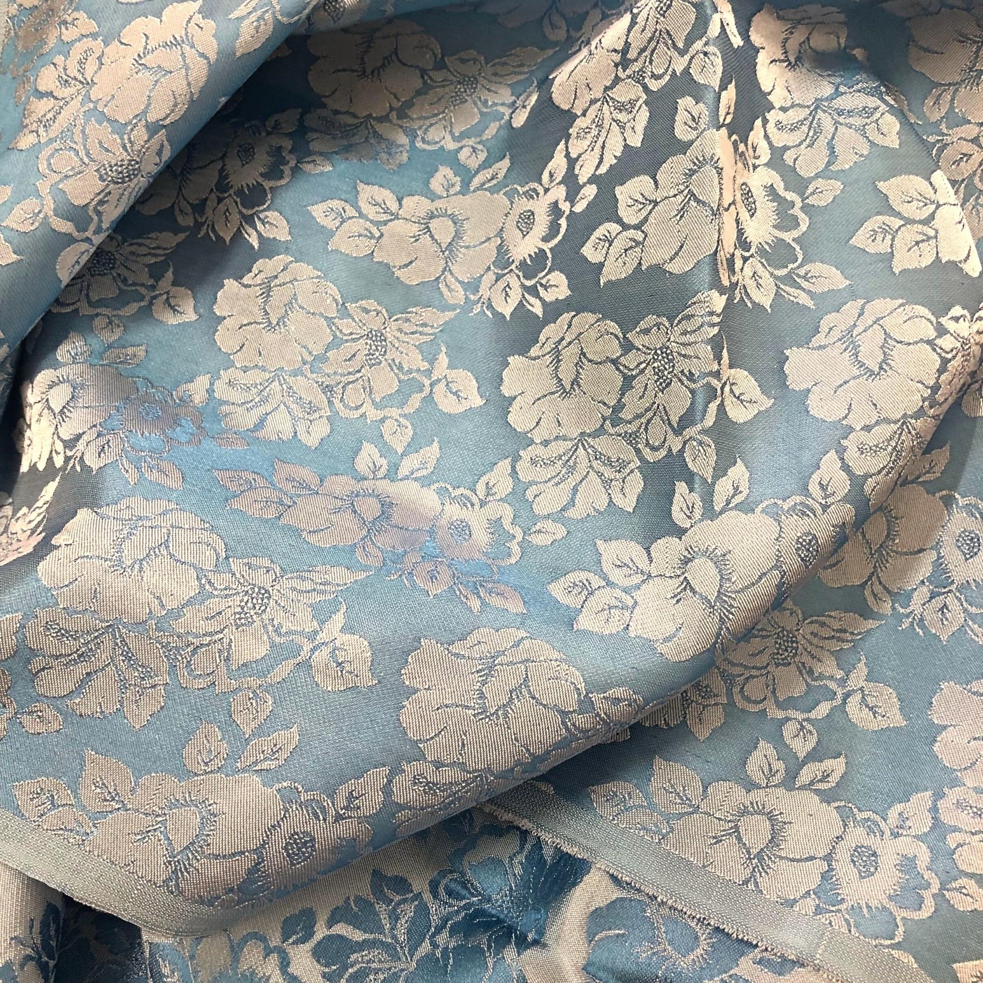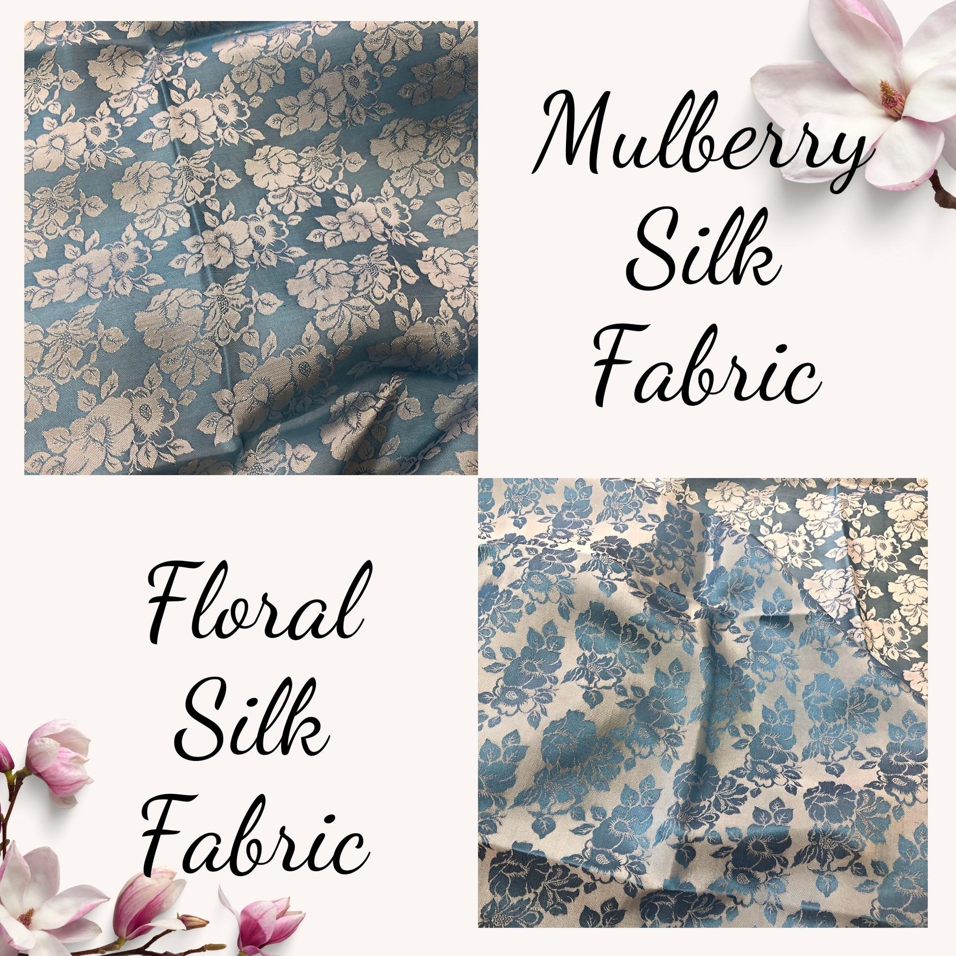 Blue roses silk pattern fabric, Pure mulberry silk, Handmade fabric, Organic fiber, Vintage textile, Dress making, Gift for women, Silk