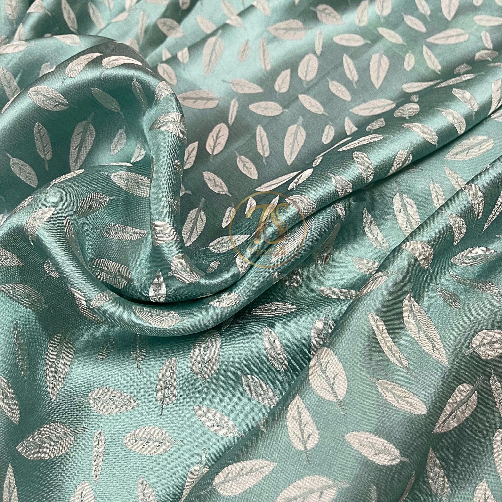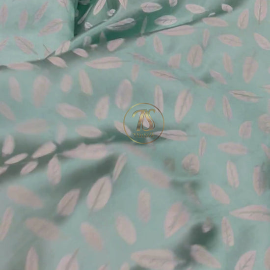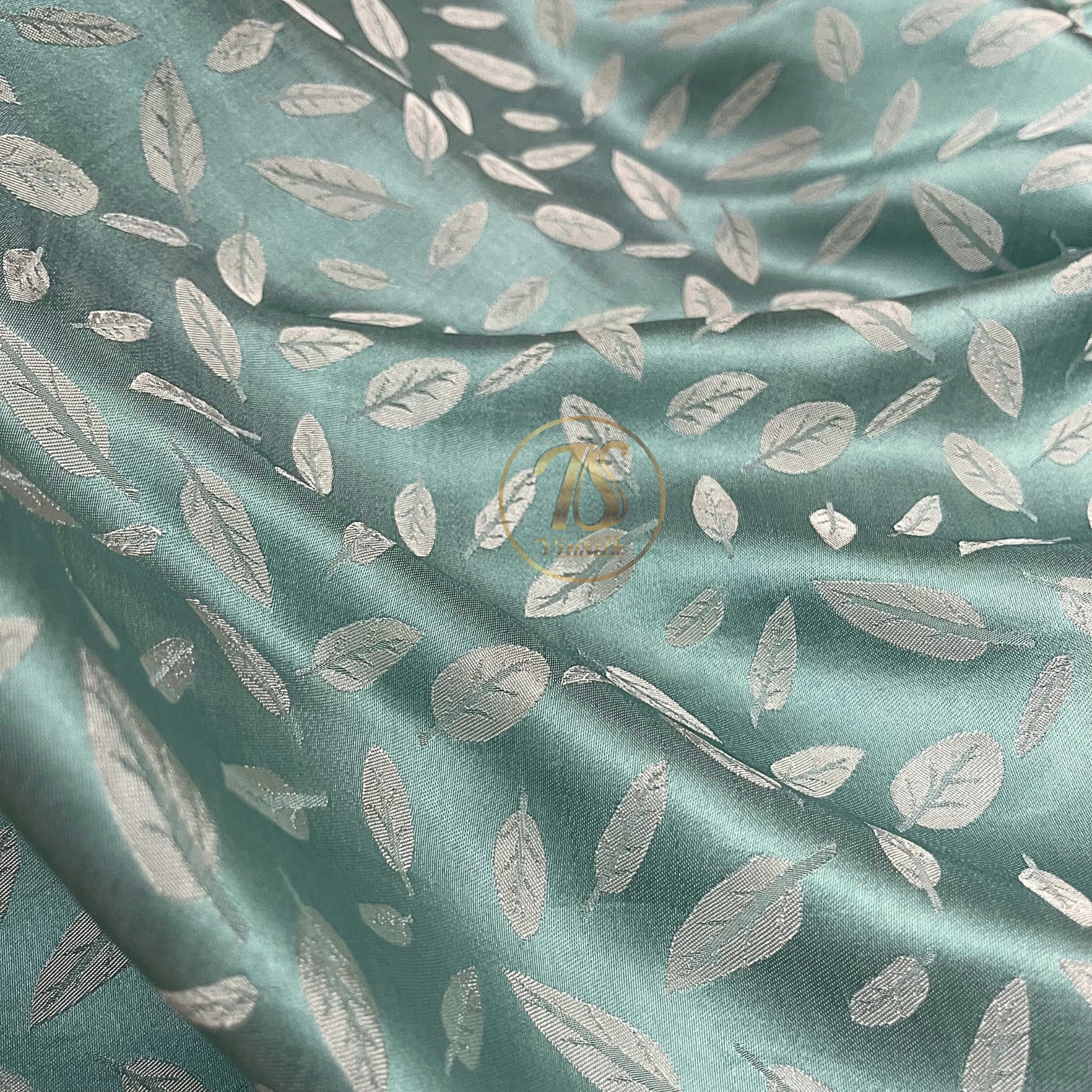 blue silk fabric with mulberry white leaves pattern, Pure mulberry silk, Handmade fabric, Organic fiber, Vintage textile