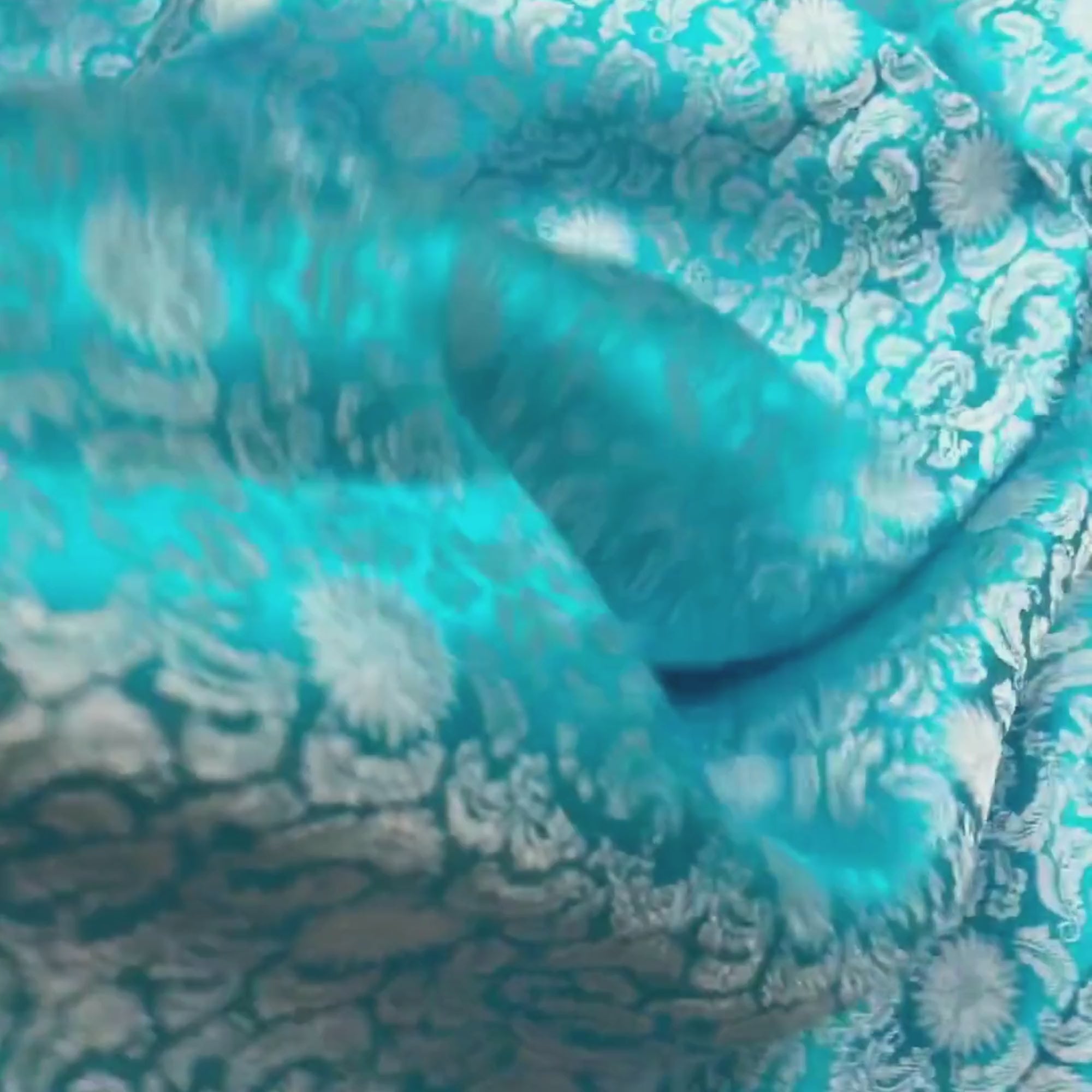Blue Sky silk fabric with mulberry white chrysanthemum pattern, Pure mulberry silk, Handmade fabric, Organic fiber, Vintage textile