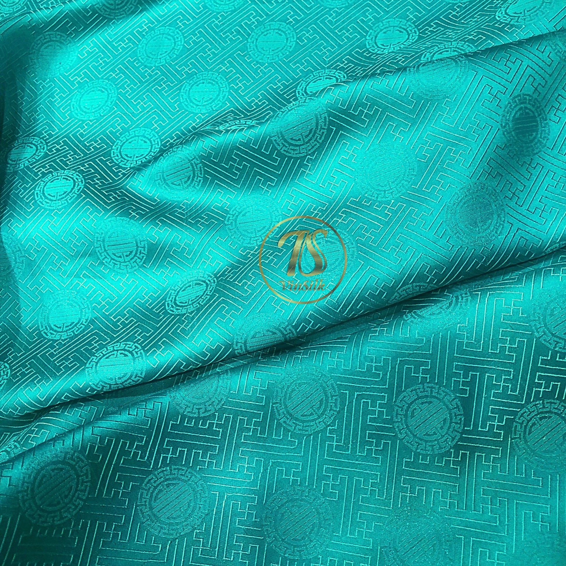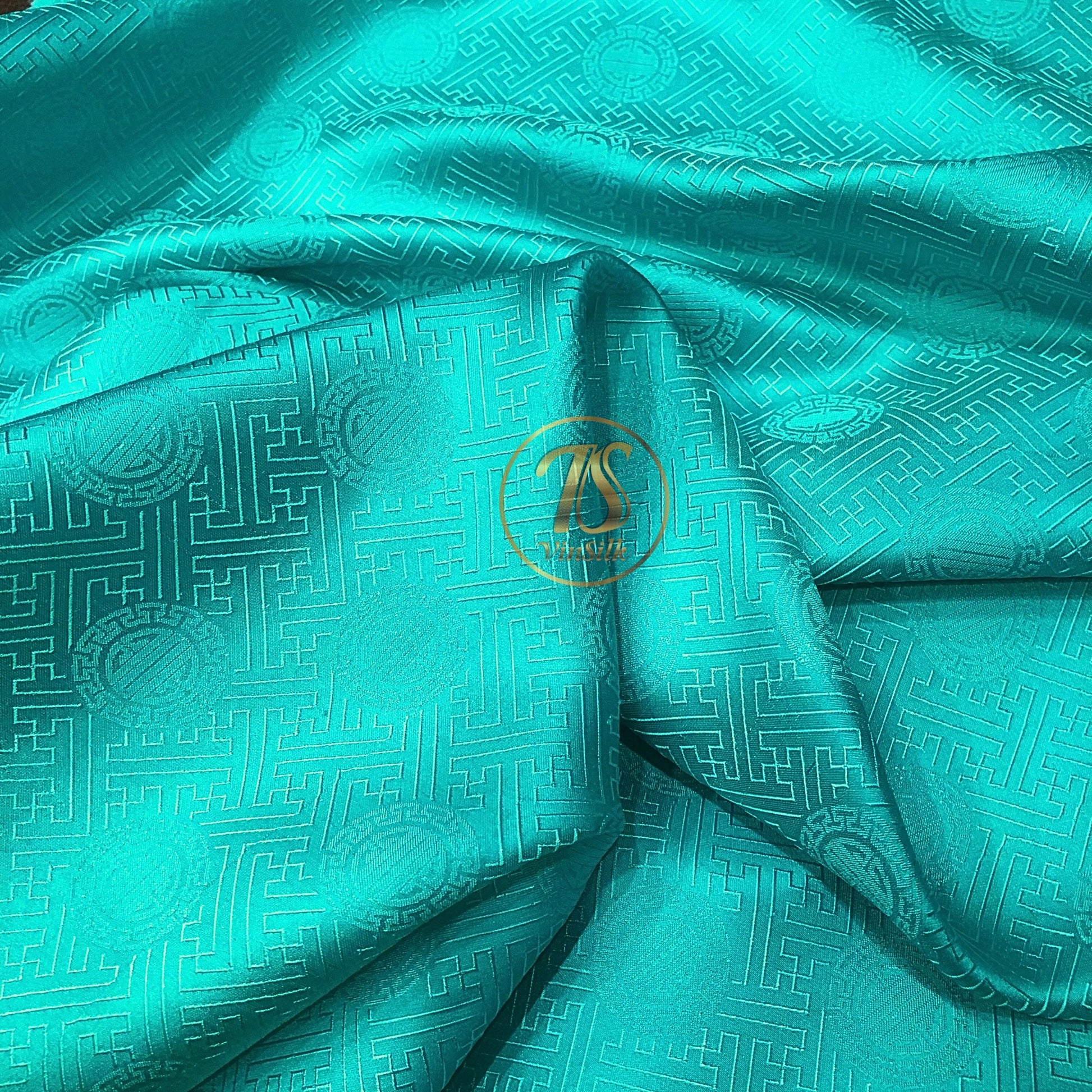 Blue Sky silk with chiness seal pattern, Floral silk fabric, Pure mulberry silk, Handmade fabric, Organic fiber
