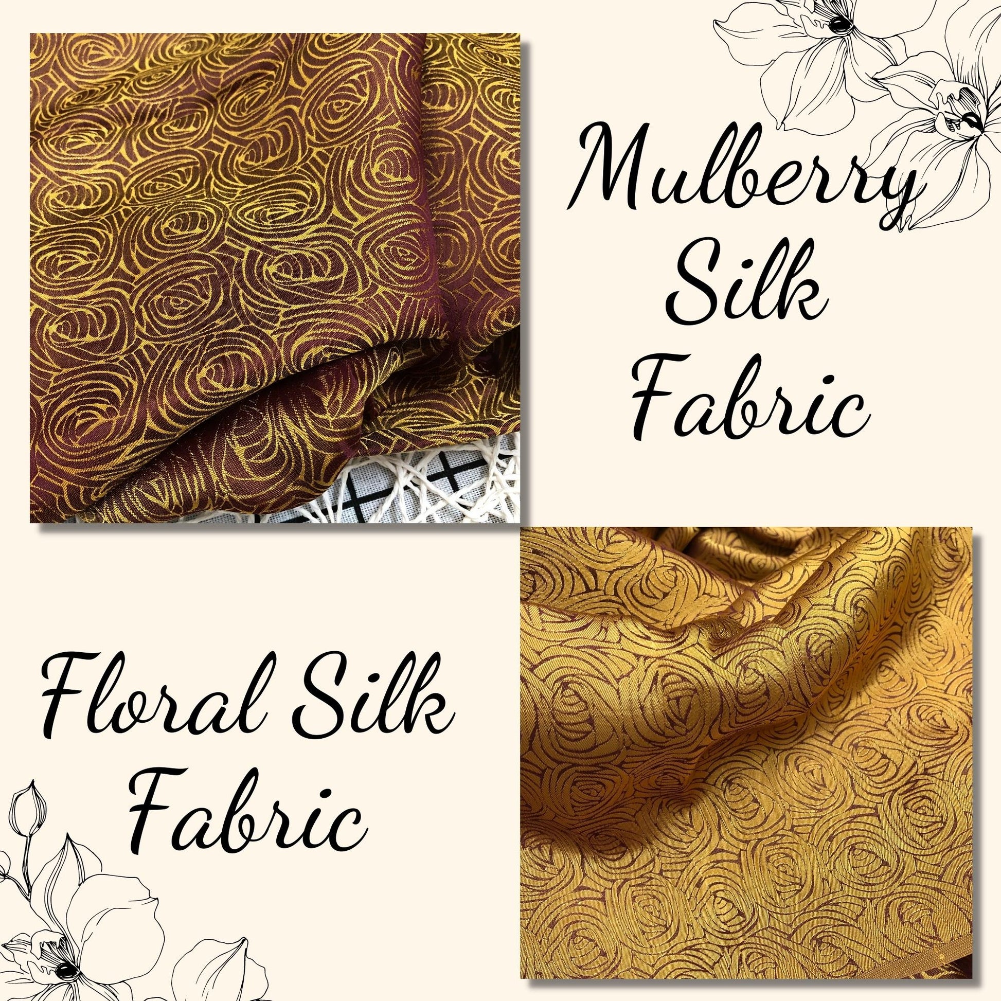 Brown Yellow silk fabric with mulberry cabbage pattern, Pure mulberry silk, Handmade fabric, Organic fiber